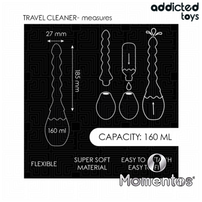 El limpiador de viaje modelo 2 de Addicted Toys es una opción ideal para quienes desean mantener sus juguetes sexuales en perfecto estado de higiene mientras están fuera de casa o viajando. Con un diseño práctico y funcional, ofrece una forma sencilla y eficaz de limpiar tus juguetes de forma rápida y segura.