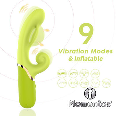 Fabricado con silicona médica de alta calidad, este vibrador cuenta con una capa gruesa y un cuello suave y flexible, permitiendo ajustar el ángulo para una experiencia más cómoda y ergonómica. Su diseño incorpora una función inflable, que permite expandir la punta para una estimulación más intensa y envolvente.
