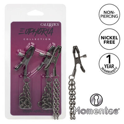 Experimenta una sinfonía de sensaciones con los Euphoria Collection Chain Nipple Clamps: un dúo audaz diseñado para los conocedores del placer.