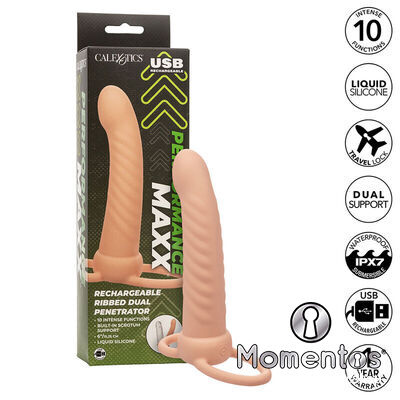 CALEXOTICS - MAXX RIBBED DUAL PENETRATOR 10 VIBRATIONS FLESH