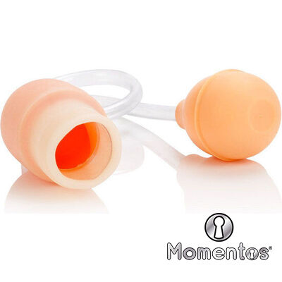 La funda del simulador cilíndrico flexible está unida a una manguera de aire flexible y una bombilla exprimible de tamaño estándar. Para experimentar hormigueos y sensaciones exóticas, desliza el pene erecto dentro de la abertura y aprieta el para aplicar una presión de bombeo sensual.