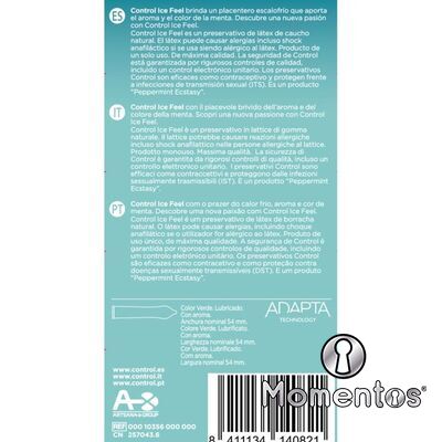 El Preservativo Control Ice Feel brinda un placentero escalofrío que aporta el aroma y color de la menta, conocido afrodisiaco. Descubre una nueva pasión con Control Peppermint Ecstasy.