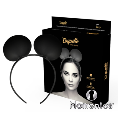 Original diadema con orejas de mouse fabricado en cuero vegano. Un producto original que puede complementar tus conjuntos de lencería.