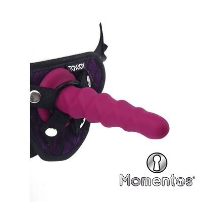 Este dong también viene con una base de ventosa para divertirse con las manos libres y es compatible con arneses.