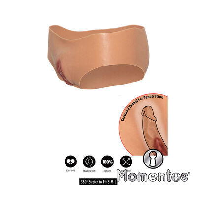 La prenda incorpora una vagina abierta con túnel interior texturizado, cuidadosamente diseñada para intensificar las sensaciones y aportar un alto nivel de realismo. En el interior del calzoncillo se encuentra un tubo suave y flexible que se adapta cómodamente al pene, ofreciendo estabilidad y confort durante el uso. Este tubo finaliza en una abertura superior funcional, pensada para permitir la micción sin necesidad de retirar la prenda, añadiendo practicidad y comodidad al diseño.