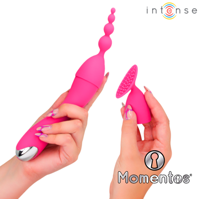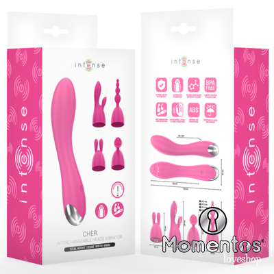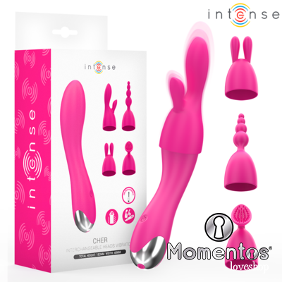 Explora una experiencia de placer personalizada con Cher, el vibrador con cabezales intercambiables de Intense, diseñado para ofrecer múltiples sensaciones en un solo dispositivo. Gracias a su diseño versátil y su potente motor, este vibrador se adapta a tus preferencias y te permite disfrutar de una estimulación precisa, intensa y completamente ajustable.