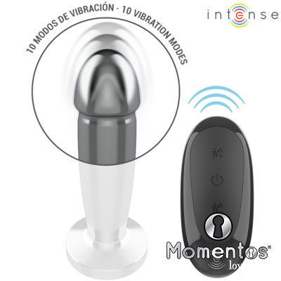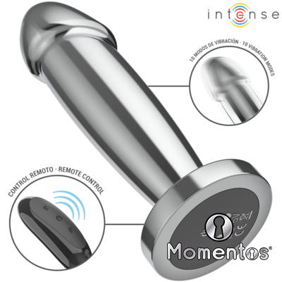 INTENSE - PLUG ANAL 10 VIBRACIONES METAL EN FORMA DE DILDO CON CONTROL REMOTO S