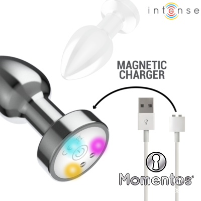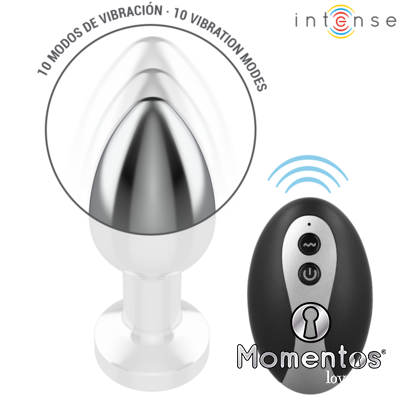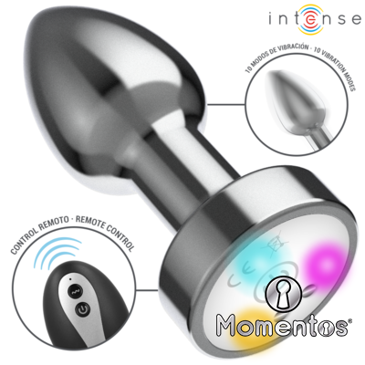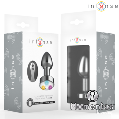 INTENSE - PLUG ANAL TALLA M DE METAL VIBRADOR CON LUCES LED MULTICOLOR Y CONTROL REMOTO