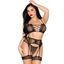 LEG AVENUE - 89359 TOP + THONG + GARTER BELT SET BLACK - ONE SIZE