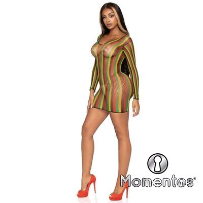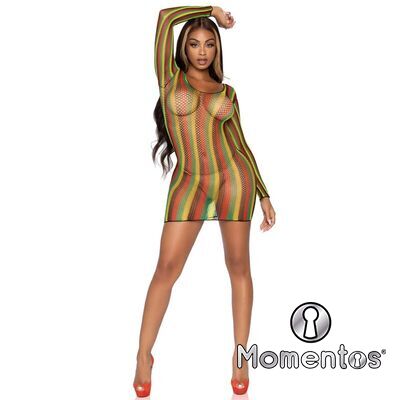 Minivestido de red rasta con mangas largas. Con Leg Avenue reforzarás tu feminidad y obtendrás ese toque justo de seducción, sensualidad y elegancia.