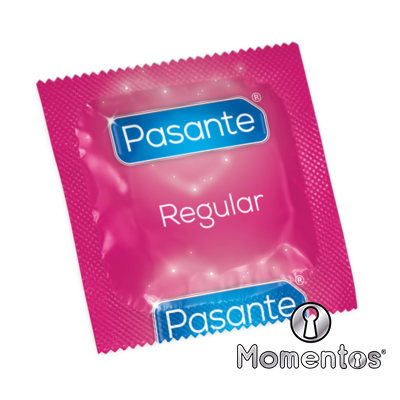 Los condones Pasante Regular tienen una ligera forma cónica para una sensación natural. Suave, de color natural y con punta de tetina.