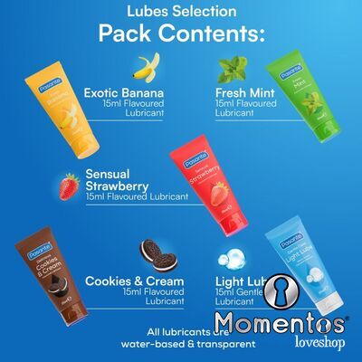 Explora nuevas sensaciones, disfruta de deliciosos sabores y crea momentos inolvidables con tu pareja. Confíe en Pasante para proporcionarle lubricantes de la más alta calidad que sean seguros, confiables y agradables. Dentro del divertido pack encontrarás una variedad de tubos de lubricante personal de 15ml que incluyen: