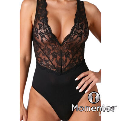 • Estilo: Body con escote en V pronunciado en la parte delantera y espalda abierta con detalles de encaje