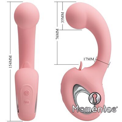Hecho de silicona de grado médico, este hermoso masajeador cuenta con 10 funciones de vibración y 5 funciones de lamido. Está diseñado idealmente para brindarte la mejor estimulación doble. La pequeña lengua estimulará perfectamente tu preciosa perla mientras que el eje te brindará vibraciones poderosas. Con un cable USB portátil, se puede usar cómodamente en cualquier lugar.