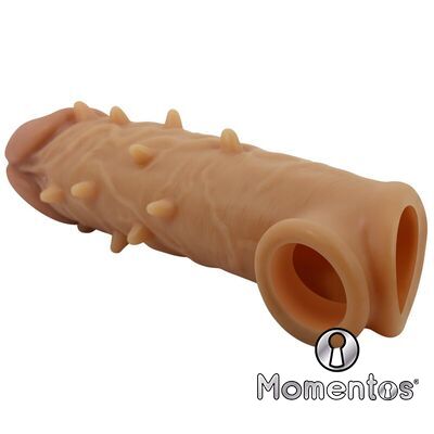 La funda está hecha de silicona líquida similar a la piel para esa sensación ultrarrealista y está esculpida por expertos para tener un aspecto realista. Esta funda de extensión de pene de sensación natural se ajusta a su erección con un eje cómodo y hueco y un anillo para testículos para un ajuste seguro que no se moverá durante el juego. Las gruesas paredes de las mangas y los nudos elevados les ofrecen aún más estimulación con cada empuje.