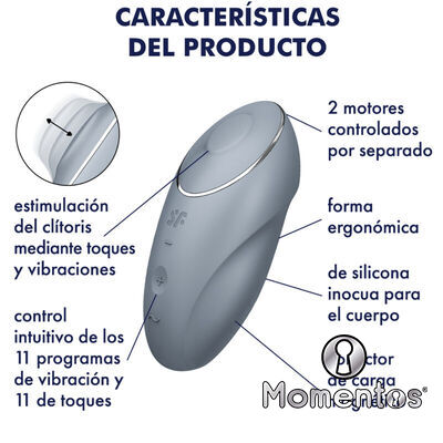 Si siempre buscas un poco más cuando se trata de vibradores de colocación, el Satisfyer Tap & Climax 1 es la elección correcta para ti: además de vibraciones intensas, este juguete sexual ofrece una función de golpeteo sensual que provoca tu clítoris. una forma completamente nueva.