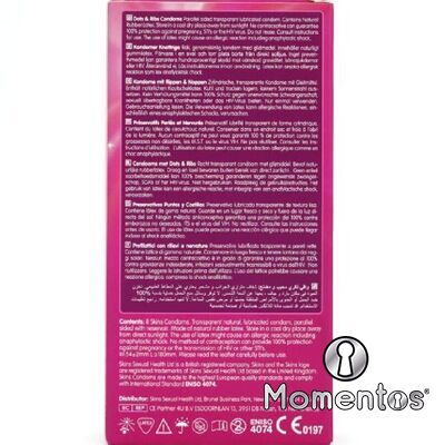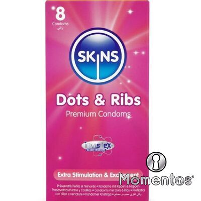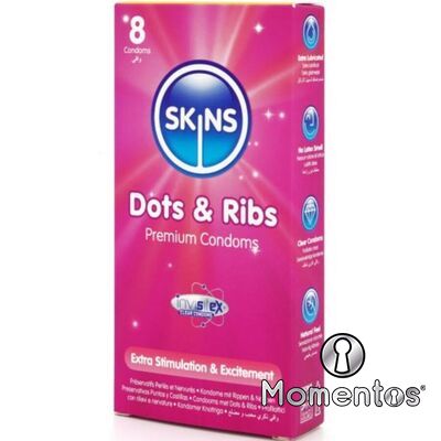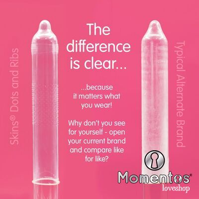 Mejora tu oferta de condones con el nuevo Skins Dots & Ribs 8-Pack, un producto listo para usar que ofrece un rendimiento superior y un mayor valor. Con hasta un 33 % más de condones por paquete que el líder del mercado, este producto es perfecto para minoristas que buscan aumentar la satisfacción del cliente y el valor de la compra. Diseñados para el placer mutuo, los condones Skins Dots & Ribs presentan estrías elevadas y puntos texturizados estratégicamente ubicados. Las estrías mejoran la estimulación del usuario, mientras que los puntos están diseñados para intensificar la sensación en la pareja, trabajando en conjunto para aumentar el placer para ambos. Fabricados con látex natural de primera calidad y ultrafinos para una sensación de segunda piel, estos condones ofrecen resistencia, claridad y comodidad excepcionales.
