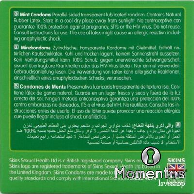 Presentamos el Skins Mint 4-Pack: un formato elegante y listo para la venta que ofrece hasta un 33 % más de condones por paquete que el líder del mercado, brindando un valor excepcional y un atractivo destacado en la góndola. Diseñados para una experiencia de sexo oral más placentera, estos condones tienen un sabor a menta fresca y están hechos de látex natural de primera calidad para mayor claridad, resistencia y una sensación natural. Ultrafinos para una mayor intimidad, están diseñados para sentirse como una segunda piel, a la vez que brindan protección y comodidad confiables.