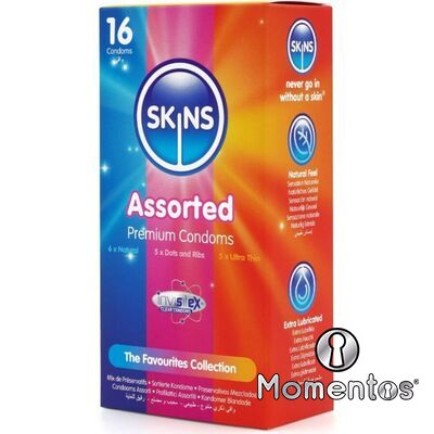 Añade variedad a tu vida sexual y mantente protegido con los condones surtidos de Skins. 16 condones individuales en 3 emocionantes variedades, cada paquete contiene una mezcla de condones naturales, con puntos y estrías y ultrafinos, lo que le permite disfrutar de diferentes aventuras de placer con este paquete surtido de los favoritos de Skins.