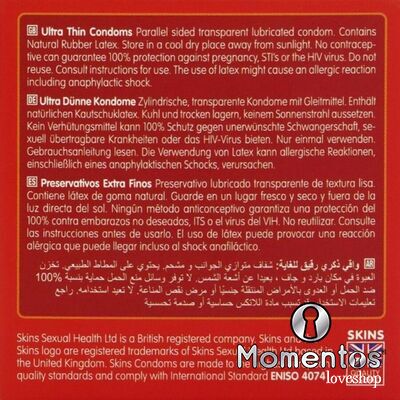 Presentamos el Skins Ultra Thin 4-Pack: un producto económico y listo para usar que ofrece hasta un 33 % más de condones por paquete que el líder del mercado. Diseñado para clientes que buscan la máxima intimidad con protección confiable, este paquete es ideal para tiendas que buscan un producto esencial premium y de alto rendimiento. Los condones Skins Ultra Thin ofrecen todas las ventajas de Skins Natural, pero con un diseño aún más fino para una mayor sensación de intimidad. Fabricados con látex natural de primera calidad, ofrecen resistencia, transparencia y una sensación de segunda piel, lo que los convierte en la opción ideal para quienes priorizan la sensación. Siéntete aún más cerca de tu pareja con el condón Skins Ultra Thin, resistente pero increíblemente fino. Con todas las características de Skins Natural, pero aún más fino, usar un Skins Ultra Thin es tan parecido a una segunda piel.