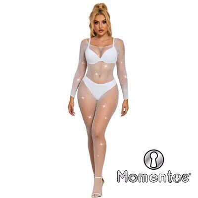 SUBBLIME - 952396 BODYSTOCKING DE REJILLA CON DIAMANTES MANGA LARGA BLANCO TALLA ÚNICA