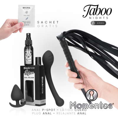 TABOO NIGHTS – 1: ANAL es un pack completo diseñado para explorar el placer anal de forma progresiva, segura y placentera. Pensado tanto para quienes se inician como para quienes buscan intensificar la experiencia, incluye una cuidada selección de productos que combinan estimulación, preparación y confort.