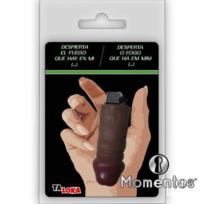 Blister con un FANTASTICO MECHERO EN FORMA DE PENE COLOR MULATO RECARGABLE 100 % CON FRASES DIVERTIDAS