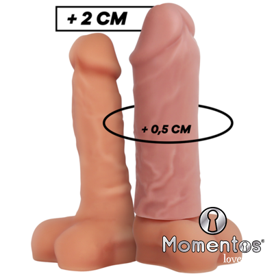 ¡Desliza la manga sobre tu erección y satisface todos sus deseos con tu nuevo tamaño aún más grueso! El material súper suave fabricado 100% en silicona médica, queda como una segunda piel o incluso mejor!