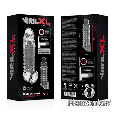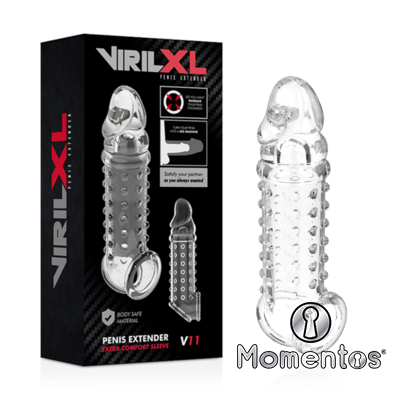 Aumenta tu grosor e intensifica el placer para ambos con esta funda para el pene VirilXL Extensión. Esta suave y elástica manga se puede recortar, para así adaptarse a la mayoría de los tamaños. Simplemente recorta por donde empieza el glande y ya estas listo para la acción. Sentirás cada sensación y tu pareja disfrutará de un nuevo grosor.