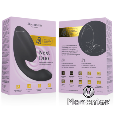 Next Duo es lo último en estimulación dual: combina la avanzada tecnología 3D Pleasure Air para el clítoris con profundas y vibrantes vibraciones en el punto G. Diseñado para brindar sensaciones más intensas y orgasmos combinados, es la puerta de entrada a un placer alucinante.